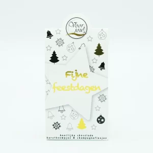 Prachtig en modern vormgegeven (tweetalig) met heerlijke Belgische chocolade. In hetzelfde formaat verpakking zijn ook mooie Zwart-Wit-Goud cadeau doosjes leverbaar. Schitterend en op zeer hedendaagse manier vormgegeven. En met dezelfde inhoud van lekkere Belgische chocolade in melk, wit en puur en in originele vormpjes.